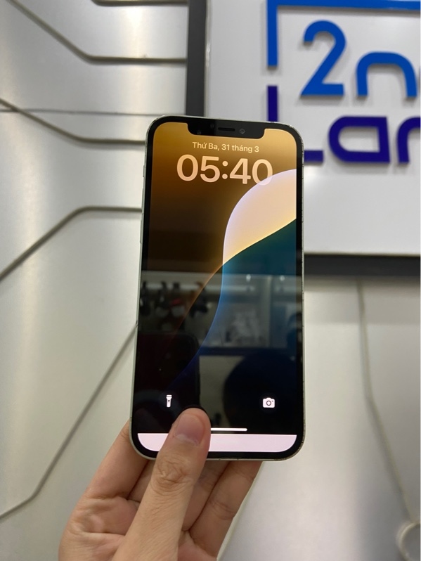 Điện thoại iPhone 12 - LL/A - 64GB - Pin 77% - Màu xanh - Ngoại hình: 97% - Viền xước nặng, màn ép kính, cam 1 đốm, mất face id, tróc phấn cam trước - Body -