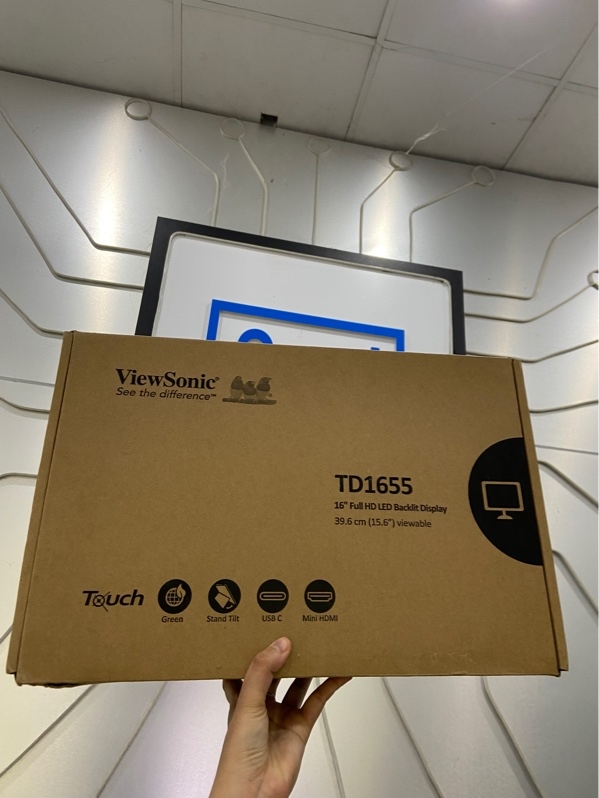 Màn hình Viewsonic TD1655 - Màn hình cảm ứng - FullHD - 60 Hz - Màu đen - Ngoại hình: 97% - Nứt kính màn, mất cảm ứng - Kèm Box + HDMI + bút