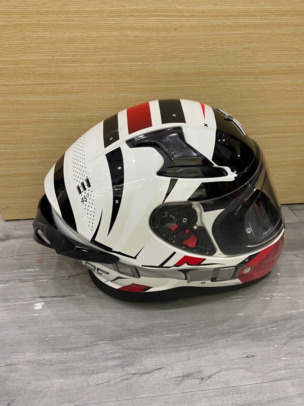 Nón bảo hiểm Axor Apex Hex 2 - Size 2XL (62cm) - Màu trắng đỏ - Ngoại hình: 97% - Gãy chốt trên đuôi gió, trầy đỉnh đầu, trầy chỗ gắn đuôi gió - Body